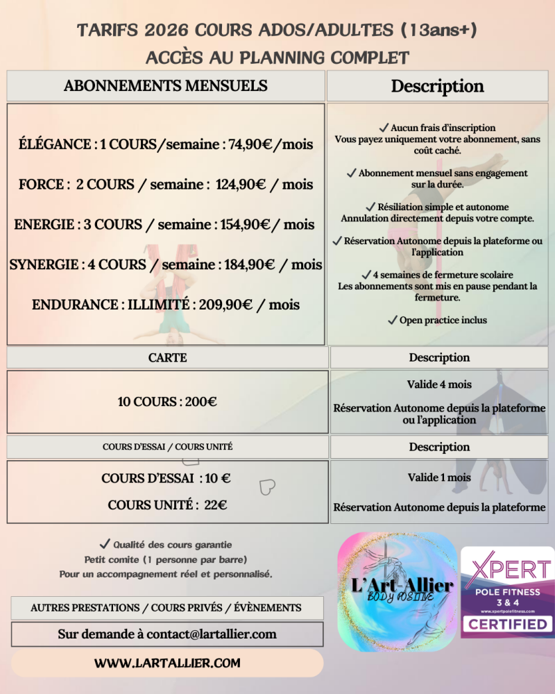 Cette page concerne les cours ados & adultes.